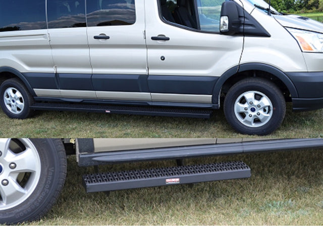 Running Boards Grip Strut Commercial 15-18 Ford Transit Van Short Driver/Long Passenger 148 Inch Aluminum Textured Black Owens Products