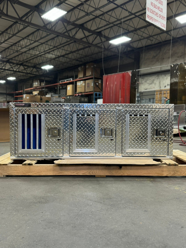 Dog Box 55029 Hunter Series Triple Compartment / 58.5 W X 22.25 D X 20 H / Door And Rear Vents / Diamond Tread Aluminum / Owens Products