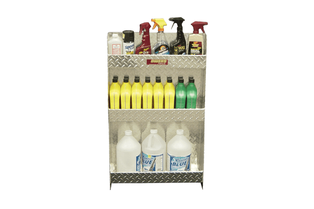 RaceMates 39205 3 Tier Storage Shelf: Aerosol, Quart, Gallon / Diamond Tread Aluminum / Owens Products