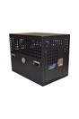 Professional K9 Series Tactical Dog Crate. Large police and military working dog crate. Manufactured from heavy duty .090 mill finish aluminum, this crate is built tough for heavy use. Fully powder coated textured black inside and out. Double wall door has a stainless T-handle with 3-point latching system for strength and security and is slotted for a crate cooling fan. Locking mechanism covered on the inside to deter K9 from biting at it and trying to open door. Features spring loaded rattle-free carrying handles and heavy-duty D-rings to secure crate in your vehicle. End entry door. All measurements are in Inches.