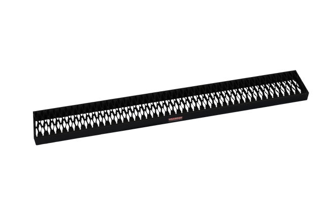 Owens Commercial Grip Strut Running Boards. These Commercial Grip Strut Running Boards for heavy use are manufactured from commercial grade grip strut aluminum and are powder coated to prevent rust and corrosion. End caps are welded on both ends to add strength and give it a nice finished look. The end caps are also great for vehicles with large fender flares or other obstructions in the wheel wells. The grip strut design on these aluminum running boards provides an aggressive sure-foot area for secure stepping all year round. These running boards feature easy-to-install body mount brackets for most applications. All applications have been tested to withstand up to 600 lbs.