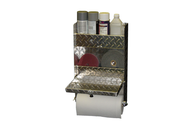 RaceMates 39200 Small Mechanics Storage Cabinet / Fold Down Tray & Paper Towel Holder / Diamond Tread Aluminum / Owens Products